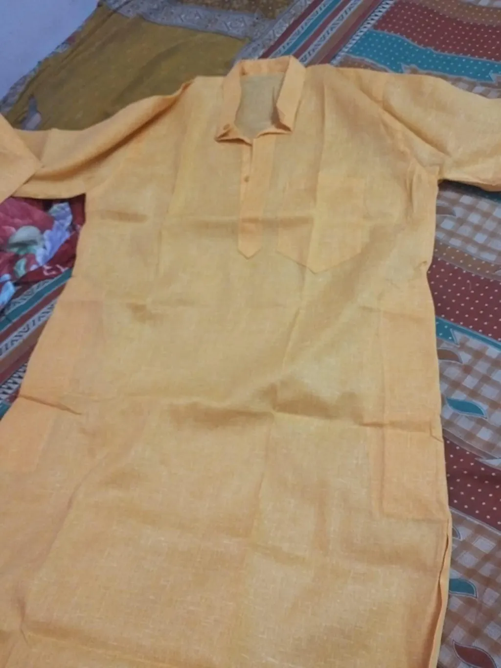 Throughout the day, the cotton mix, breathable fabric will provide you with amazing comfort and feel soft on your skin. Men's knee-length kurta and Pajama, Buttons on the full-sleeved, round-neck mandarin collar and chest pocket.