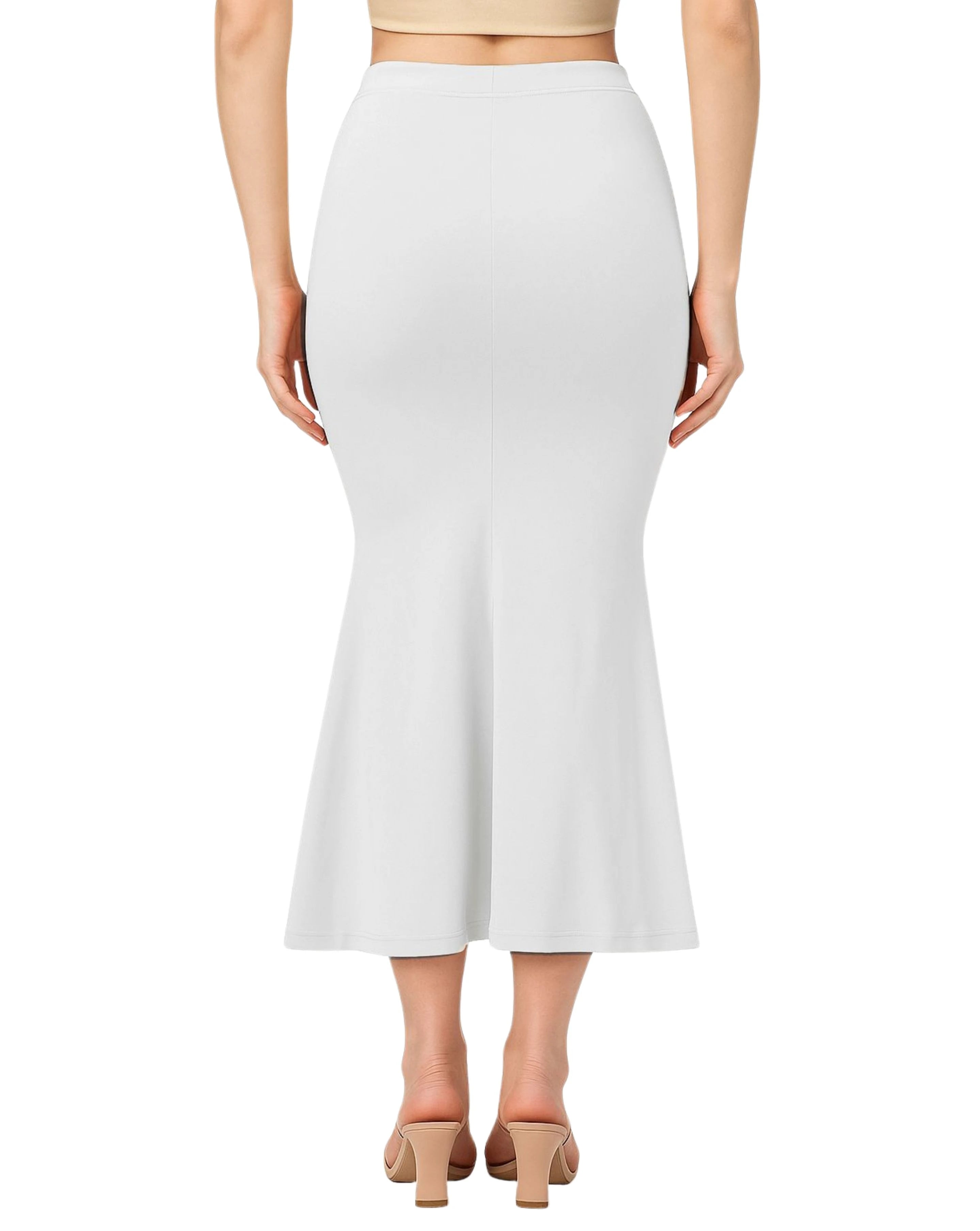 Designed in a mermaid/fish-cut style, it shapes the waist, hips, and thighs while allowing easy movement with a flared bottom.